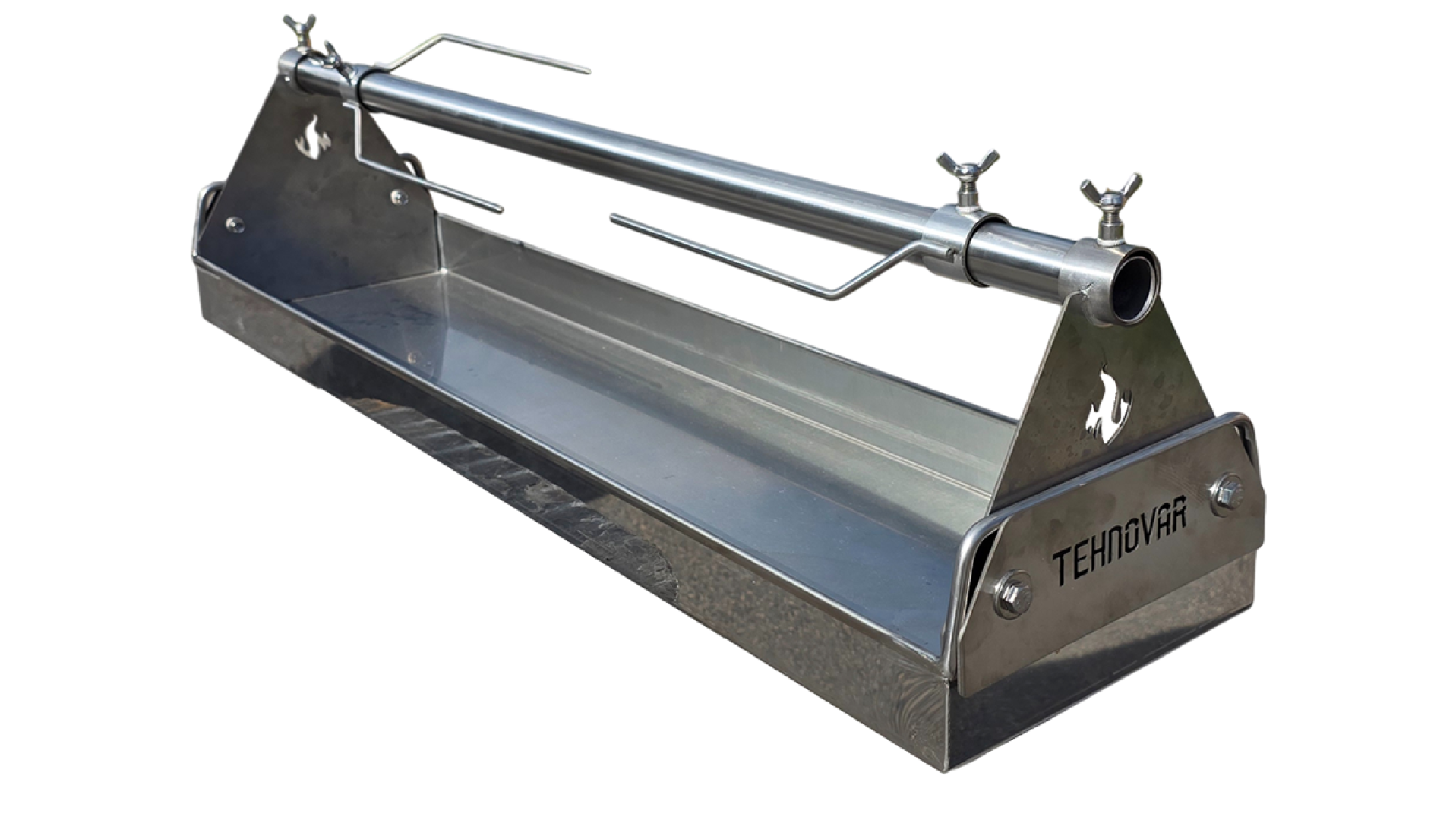 Specijani nosači za ražanj koji se montiraju na bočnu stranu Tacne za FireBox i služe za držanje cijevi za ražanj prilikom pečenja. Nosači se mogu montirati na svaku posudu koja ima ručke. Jednostavan sistem sa dva vijka, spaja dvije pločice i čvrsto drži nosače na odgovarajućoj poziciji. Rupe u cijevima na nosaču su promjera 44 mm i prilagođene su da odgovaraju našem standardu cijevi ražnja koja je promjera 32 mm. Ražanj se na nosač priteže sa dva vijka. Vijci imaju krila i nije potreban ključ za pritezanje.