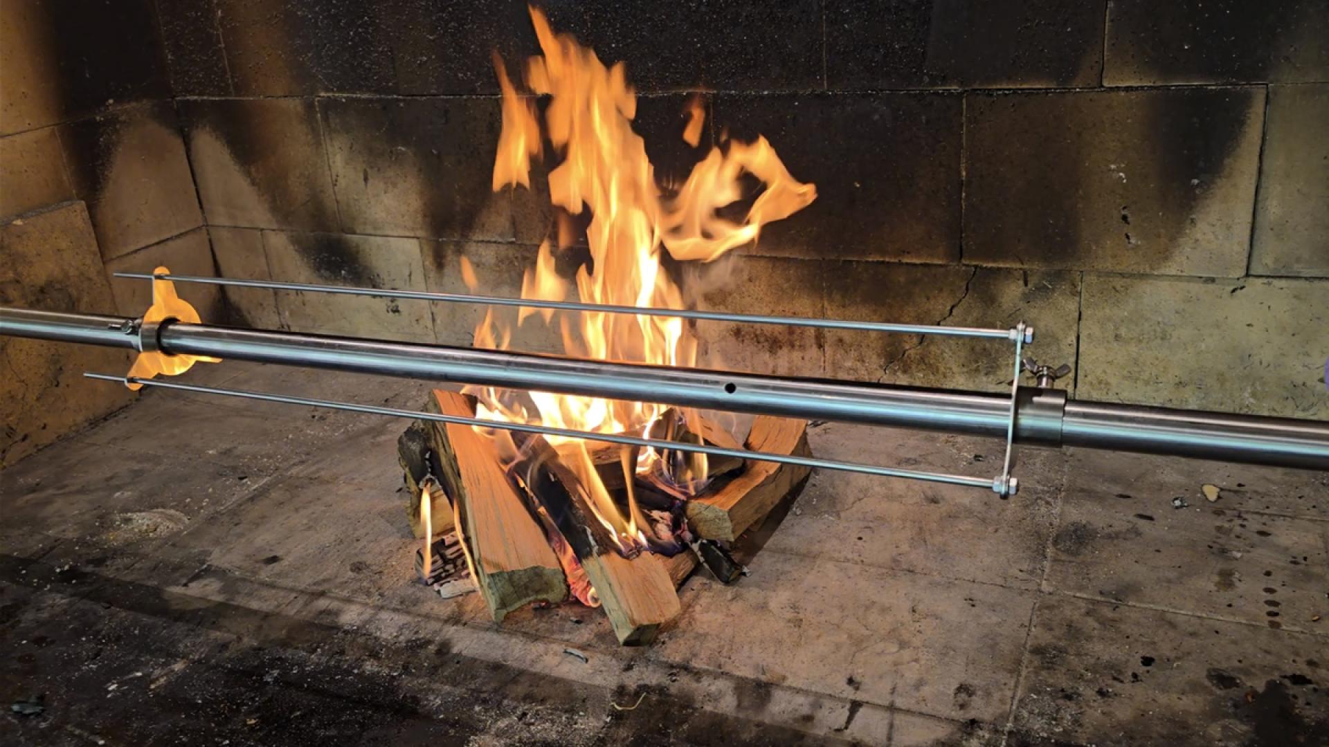 2 nosača vilica. Jedan nosač služi za montažu špica i na njemu su fiksirane 3 špice, sistemom na navoj. Drugi nosač vilica se montira na suprotni kraj i služi kao oslonac prilokom pečenja.