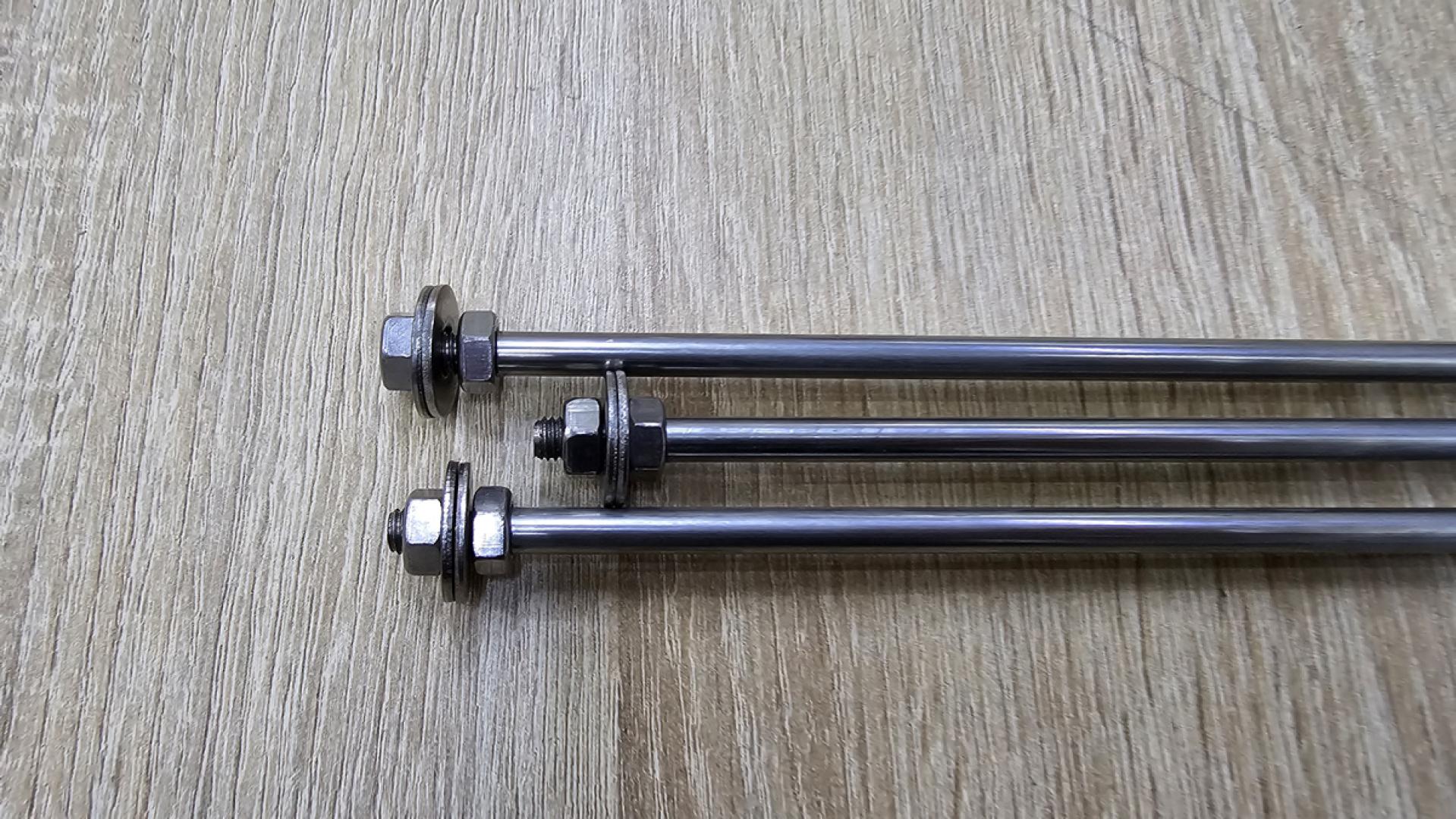 3 špice duljine 80 cm. Montiraju se na jedan nosač. Svaka špica ima 2 cm navoja, 2 matice i 2 podložne pločice. Za montažu Vam je potreban ključ broj 10