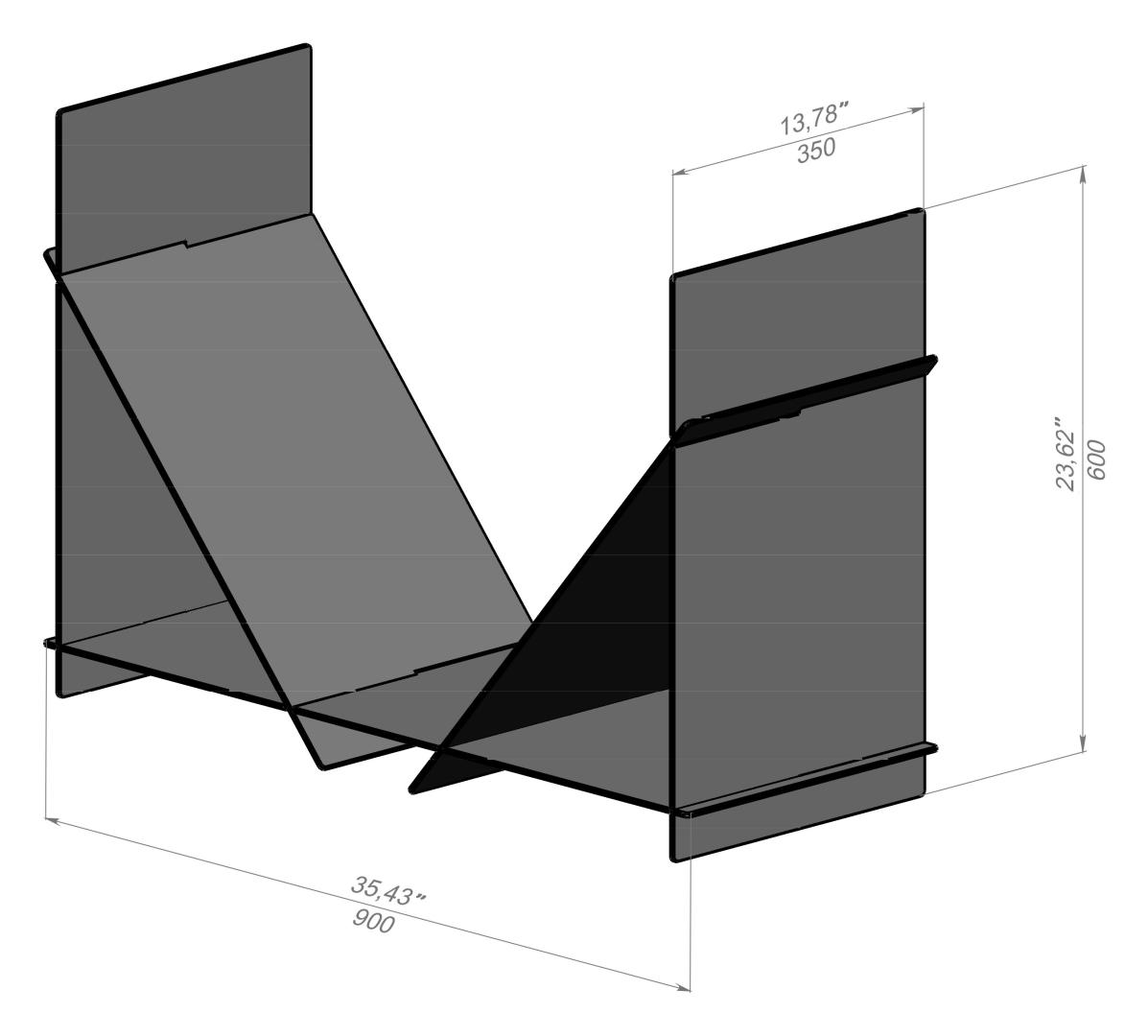 Izrađen od čvrstog željeza debljine 4 mm i obojen u sofisticiranu antracit boju, stalak je stabilan, izdržljiv i dugotrajan. Dimenzije 90 × 35 × 60 cm omogućuju praktičnu pohranu ogrjevnog drva, a kompaktan oblik omogućuje jednostavno uklapanje u manje prostore.