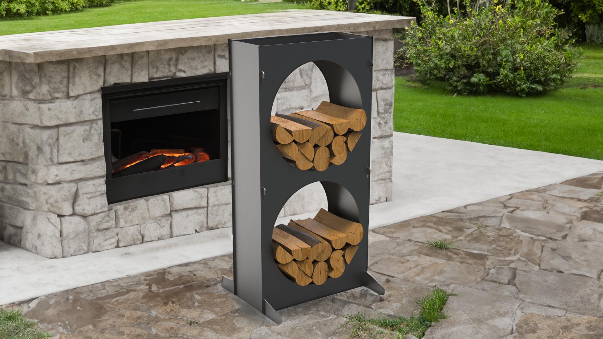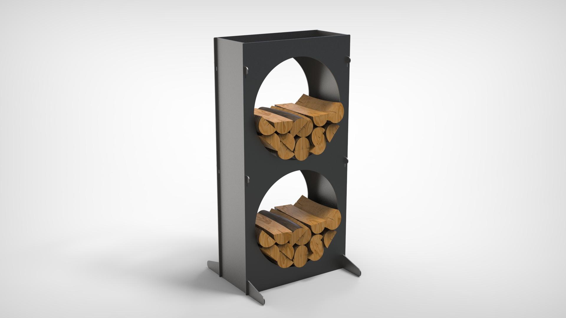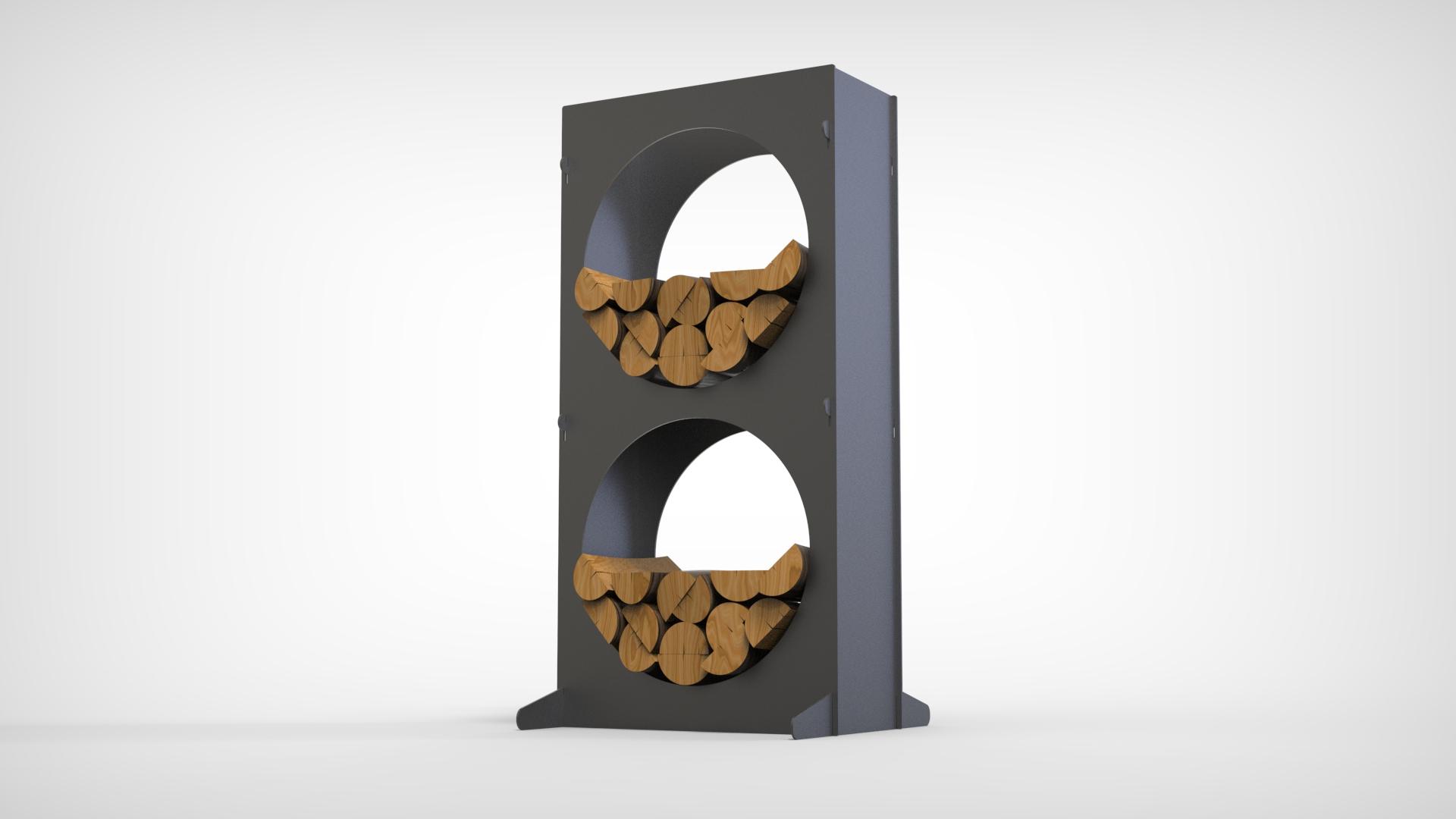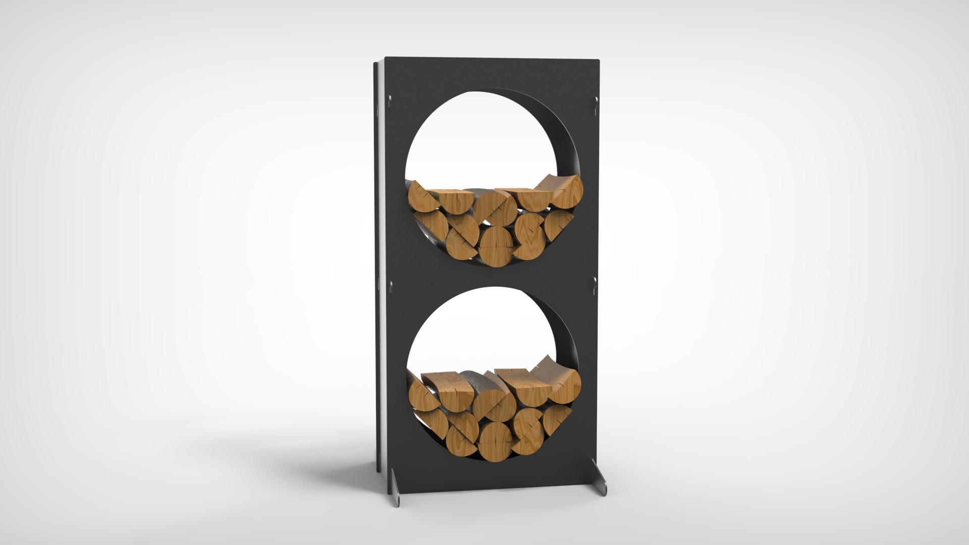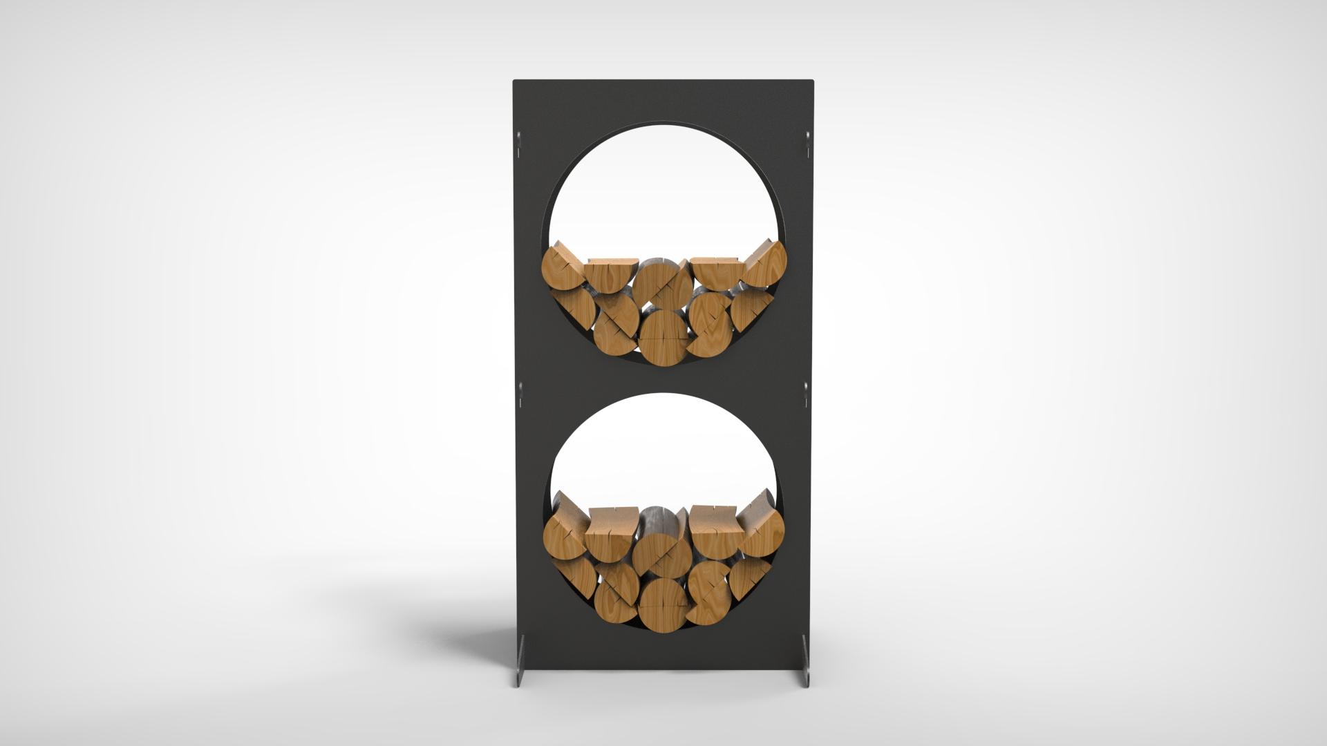 Stalak za drva Krugovi Plus spaja funkcionalnost i suvremeni dizajn u atraktivnom obliku s naglaskom na kružne linije. Njegova dinamična struktura unosi vizualni ritam i eleganciju u prostor, dok veće dimenzije omogućuju praktičnu i urednu pohranu većih količina ogrjevnog drva.