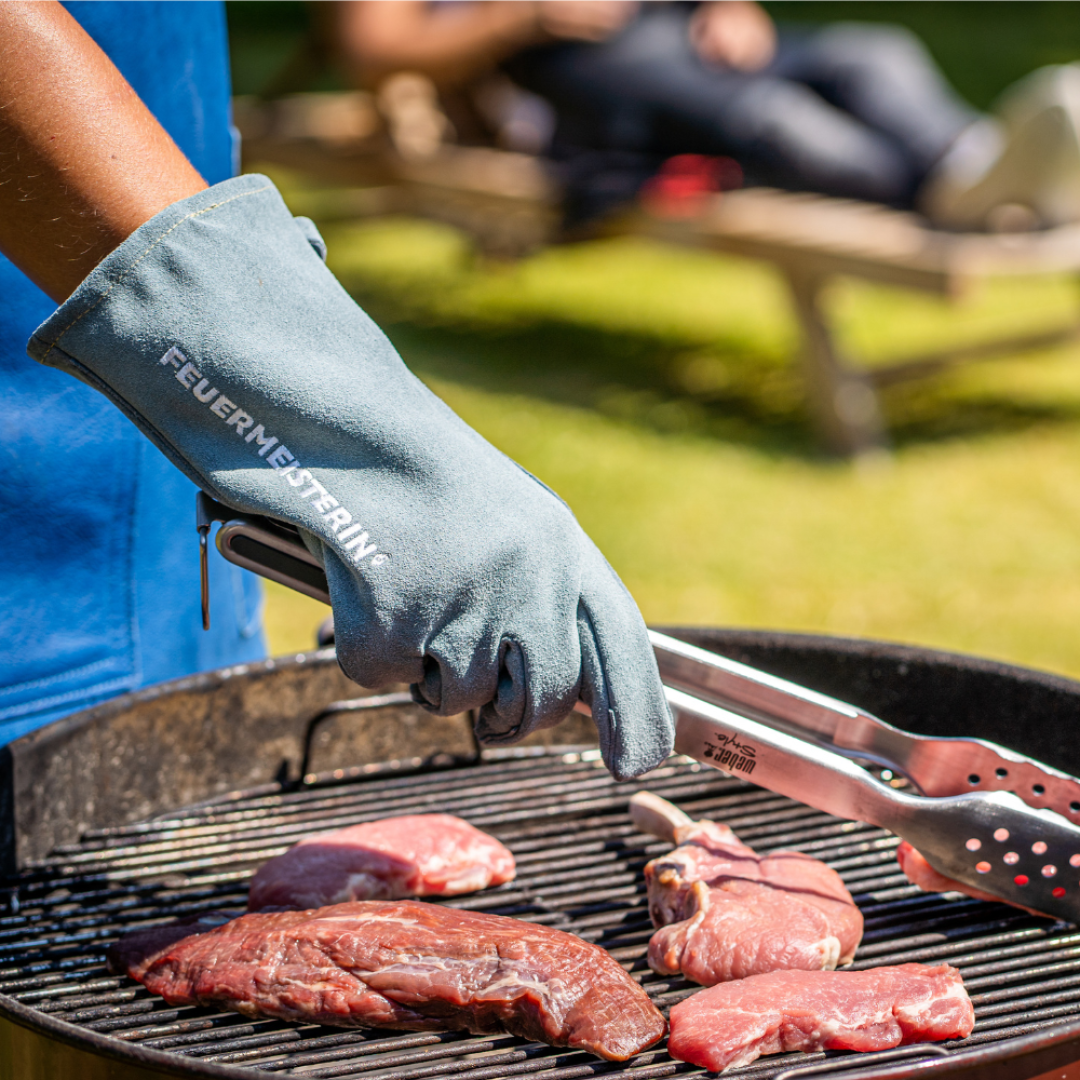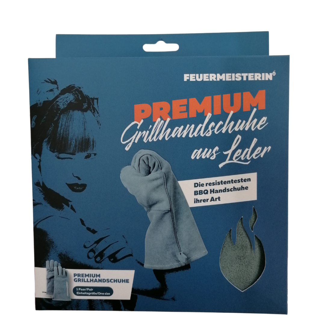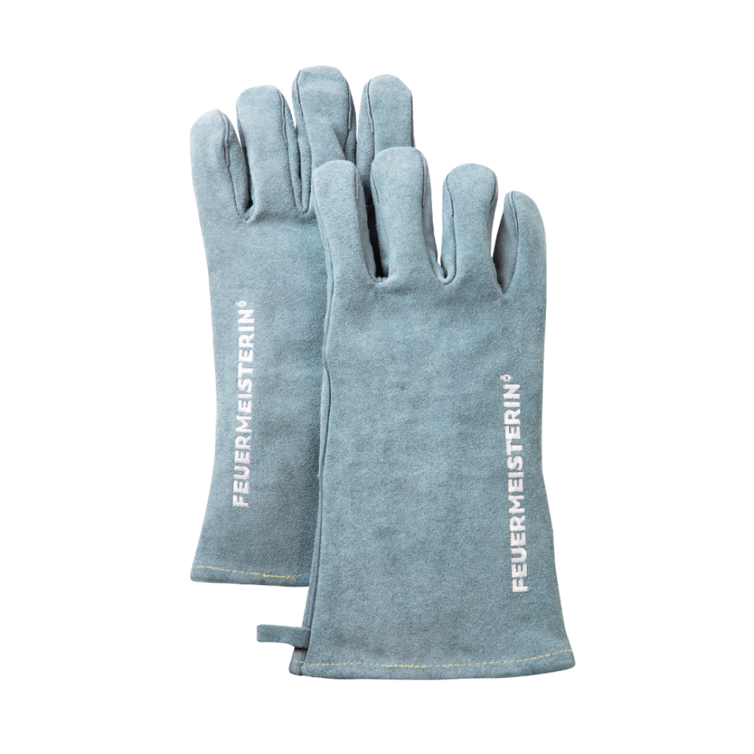 Feuermeisterin Premium kožne rukavice za roštiljanje izrađene su od najfinije goveđe cjepane kože. Svi šavovi su zašiveni pomoću kevlarske pređe otporne na toplinu i trganje.